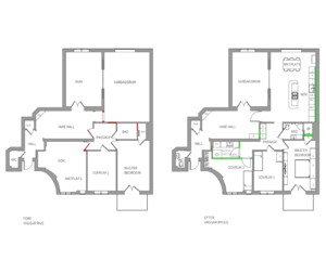 Planlösningsändring i ett projekt i Vasastan som våra inredningsarkitekter hjälpt till med